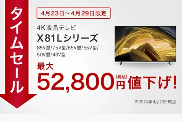 【終了間近】BRAVIAタイムセールは4/29まで|X81LとX75WLセール価格と性能差を解説