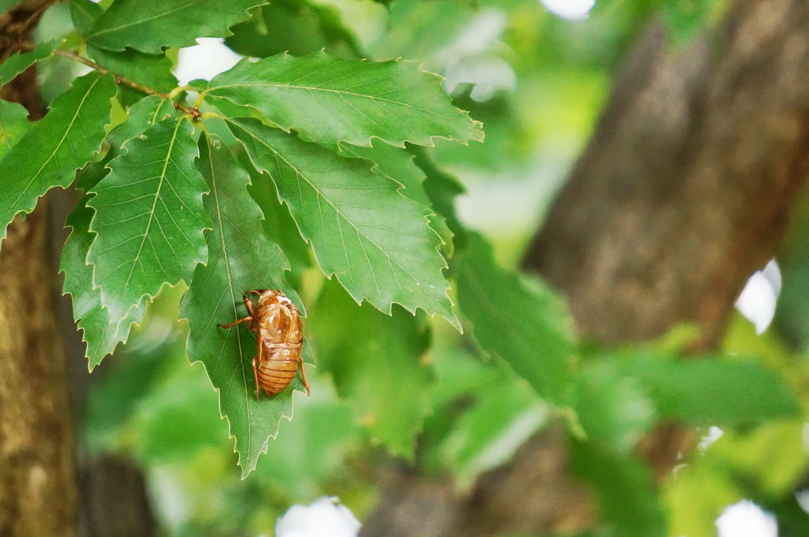公園の中はどこもセミの大合唱。鳴いているセミの姿を探しながら歩くんですが、これがなかなか見つかりません。