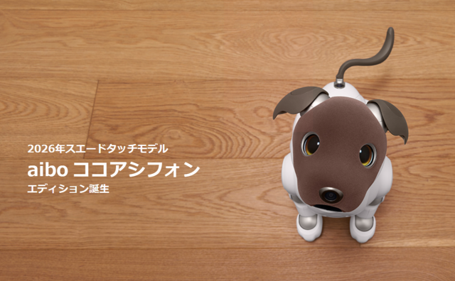 ソニーのエンタテインメントロボット”aibo”に、2026年モデル「aibo ココアシフォン エディション」が登場しました。 起毛加工を施した“スエードタッチ”仕様をフェイスプレート部分に採用。ふわふわとした手触り “ス […]
