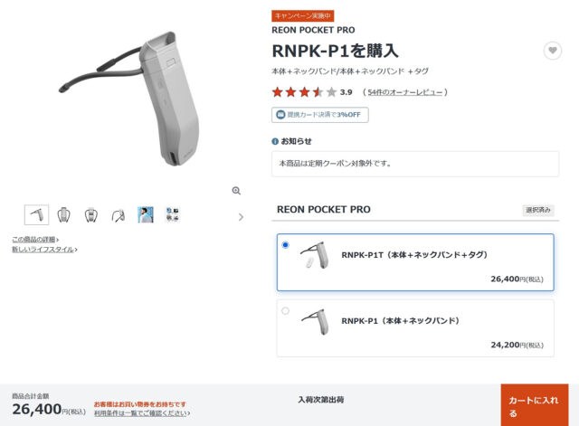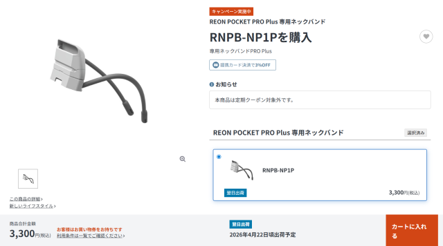 既にREON POCKET PROをお持ちの方は先述したとおり、最新のアップデートを行い、別途3,300円の新型ネックバンド「RNPB-NP1P」を購入することでPRO Plusと同様のホールド感が向上したシリーズ最強冷却を体感できます。