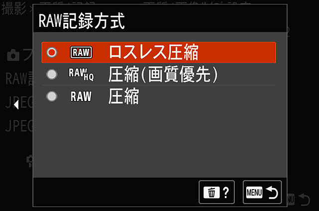 その後、スロット1に圧縮RAWを指定して、スロット2にJPEG記録をします。