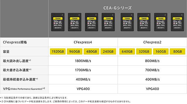 | CFexpress Type A メモリーカード 240GB/480GB/960GB/1920GB CEA-Gシリーズ |