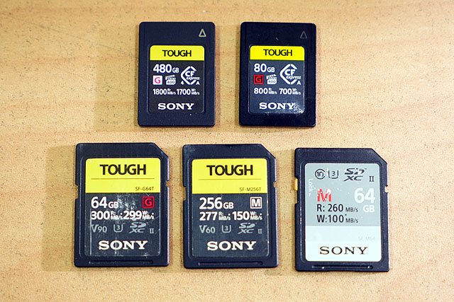 CFexpress4対応のカードもそろったことだし、ソニーさんの歴代高速カードをそろえてテストしてみようと思います。