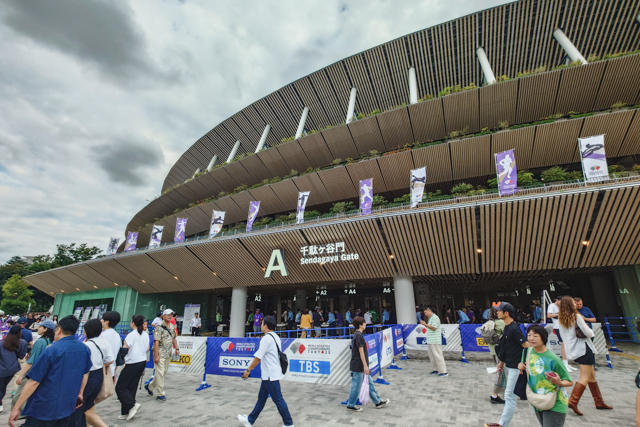 金曜日に早退させていただき国立競技場へ行ってきました。女子やり投げ予選があるDay 7は人気も高くチケットは完売しているそうですが、私が購入したのは半年前です。良い席のチケットを買えているんです。17時入場のため16時過ぎに現地に到着して、まずは会場を一周して入場します。