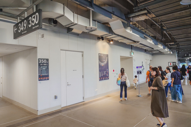 Aゲートから入場して3層にある席まで移動すると、見覚えのある景色が。そうだ、ここは東京レガシーハーフマラソンの時に荷物預けをしたスペースだったかな。ここのお手洗いの前で出走準備をした記憶があります。