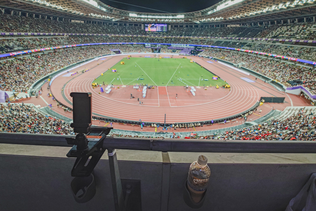 Xperia 1 VIIがこれまた良く出来ていて、16mm超広角カメラだと会場全体が。24mm広角カメラだとフィールド全体が。48mm標準画角だとやり投げフィールドがちょうど上手く収まります。