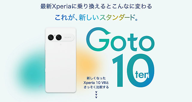 WEBサイトにもスペシャルコンテンツとして「最新Xperiaに乗り換えるとこんなに変わる | これが、新しいスタンダード。Go to 10」が掲載されました。お持ちのXperiaとの性能比較ができるサイトになっています。
