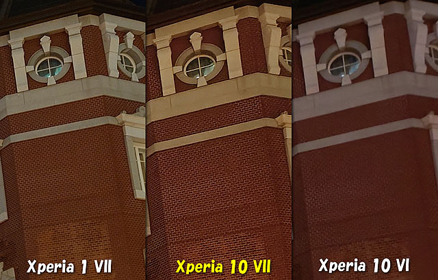 なるほどー、Xperia 10 VIIの大型化された1/1.56型センサーの威力は大きいですね。Xperia 10 VIと比較すると輪郭のシャープネス感や解像度が全然ちがっています。暗所にこれは強いですね。