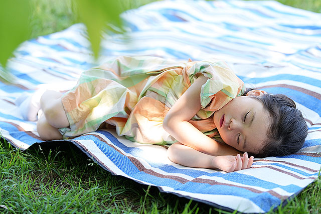 こちらはメーカーサイトに掲載されているピクニックシートの上で眠る子どもの姿。