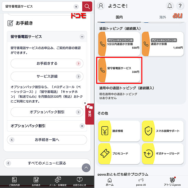 私はあまり不在にしていることも少ないので利用したことがないのですが、多くのキャリアでは通信サービスの一部として月額330円前後で留守番電話サービスを用意しています。