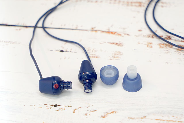 イヤーピースはXS、M、XLサイズの3種類が同梱されていて、内側の筒部分と外側のスカート部分で別素材を使ったハイブリッドイヤーピースが採用されています。