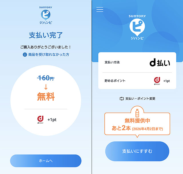 その後「ジハンピ」アプリを開いた状態でジハンピにタッチすれば決済完了です。