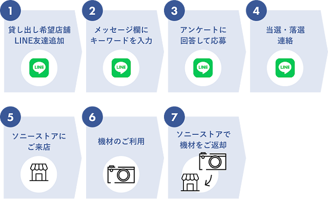 ・LINE友だち追加・応募はこちらから、貸出機材の受取り・返却希望のソニーストア 店舗を選択して、LINE友だち追加してください。