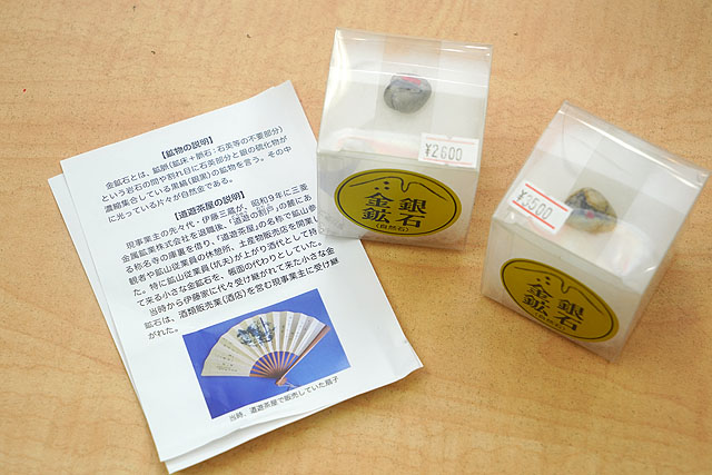 お土産売り場では金箔を施したおまんじゅうとかいろいろ売っているんですが、本物の金というか石などは販売されていません。