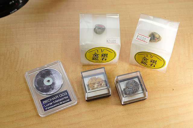 なお、金鉱石以外にも、いくつか用意をしています。化石のアンモナイトとか、琥珀、そして本物かどうか確証が得られないんですが、通販で買った「月の石」もあります。