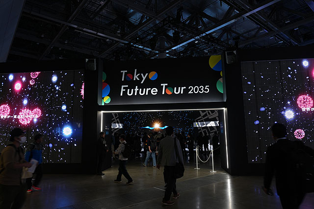 トヨタのある南ブースから戻ってきて、今度は西館にある「Tokyo Future Tour 2035」へ向かいます。メーカーさんごとのブースがあるほか、全体でテーマ展示をしているところがあって、ここは10年後の2035年をテーマにした未来の技術を使っている展示コーナーということになります。たくさんのメーカーさんが展示を行っています。