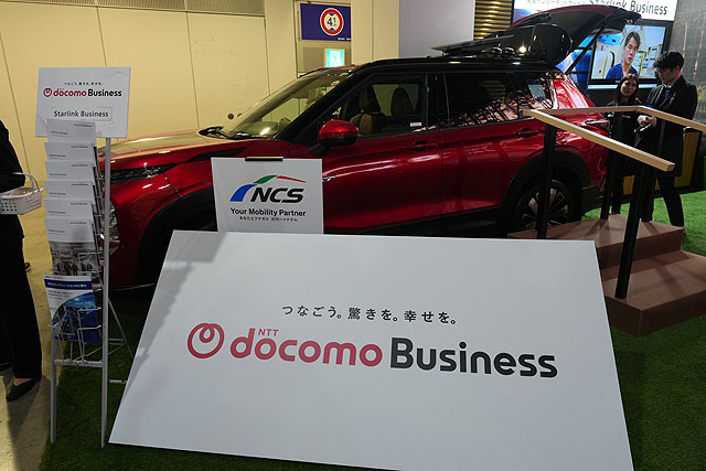 こちらはドコモさんで、すでにサービスをしているのかな? Starlink衛星を活用した通信サービスの展示で、クルマに乗った衛星アンテナで衛星通信を行い、どこででも通信サービスを展開できるそうです。
