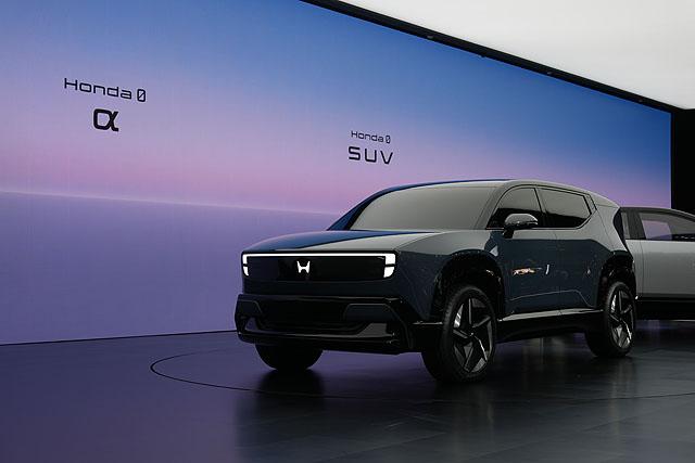 ホンダさんもEVカーの展示が中心になっていて、写真は「Honda 0 α」というコンパクトなSUVとのことです。”α”というネーミングがいいですね。
