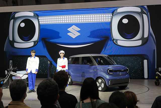 こちらはスズキのステージです。スズキは昨年もステージ展示が主体で、ここで発表されたコンセプトカーなどをパフォーマンスで伝えています。前回の2023年はハスラーのEVカー?というモデルが展示されていましたが、今年はもっと実用的なEVカーになって展示されています。ハスラーというよりはワゴンRスマイルっぽいデザインになっているかも。