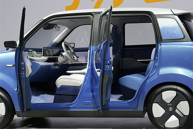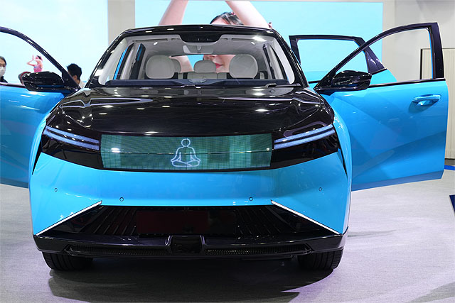ソニーではメディアバーと呼ばれている車両先端の表示も備えています。そういえば、スズキの軽EVにも表示パターンがいくつも用意できそうな仕掛けがあったみたいです。未来のクルマの形が見えてきましたね。