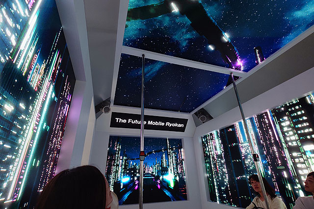 いすゞさんのブースです。自動車メーカーの枠を超えた展示がたくさんありますが、トラックメーカーのいすゞさんも「うごく旅館」という面白そうな展示をしています。15分くらいで体験出来るというので見せていただきました。