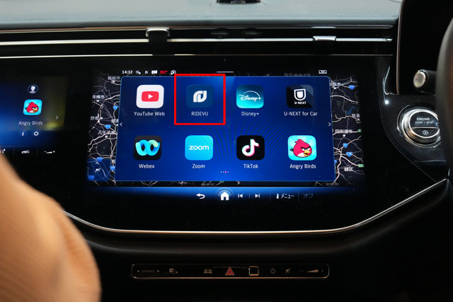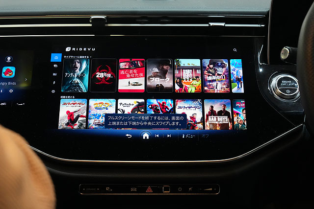 体験乗車するとアプリの説明をしてくれていてここで「RIDEVU」というアプリを利用するという説明をはじめられます。このアプリがなんと「SONY PICTURES CORE」のコンテンツを再生出来るとのことでこのアプリを利用。