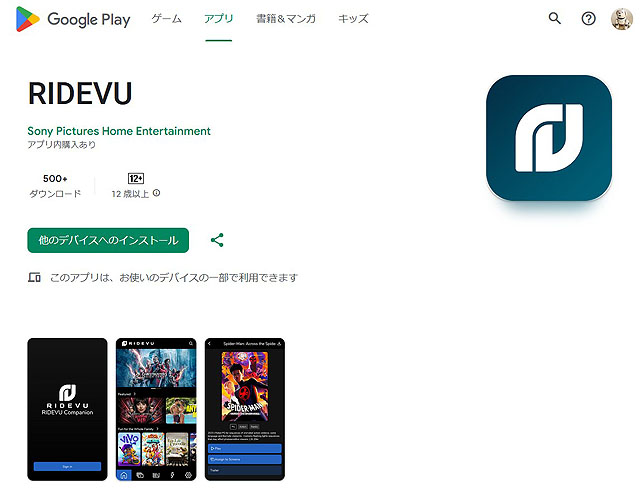 Google Playで探してみると「RIDEVU」アプリはすぐに見つかり、私のXperia 1 VIIにもインストールができました。