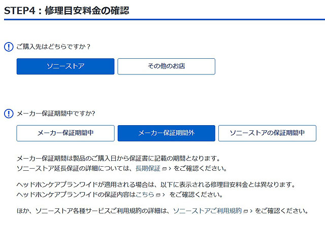 量販店などの販売店独自の保険に入っている場合は、ソニーのオンライン修理ではなく購入された販売店へご相談いただくことになります。