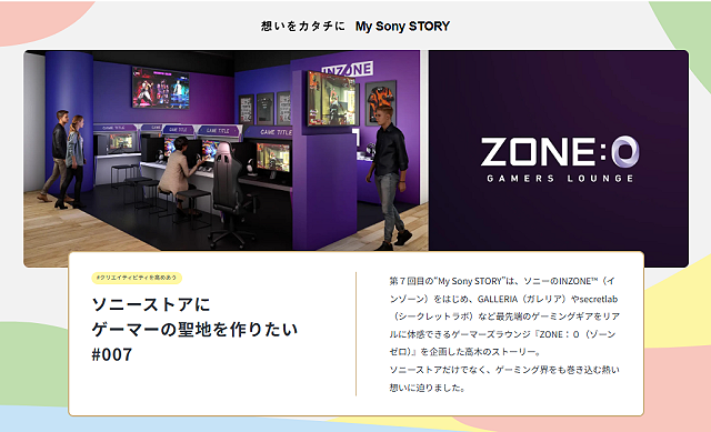 「ソニーストアにゲーマーの聖地を作りたい」 その思いから“My Sony STORY”で最先端のゲーミングギアをリアルに体感できるゲーマーズラウンジ『ZONE:0(ゾーンゼロ)』を企画したその秘話について語られています。