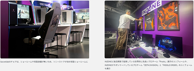 “ソニーストアに来ると常に最高のゲーミング環境でプレイできる”という価値を提供するのがベストではないかということで、ゲーミングPCはGALLERIA(ガレリア)、ゲーミングチェアとデスクはsecretlab(シークレットラボ)と、その世界の最高峰ブランドとタッグを組み、もちろんヘッドホンやモニターは最新のINZONEで揃えられています。