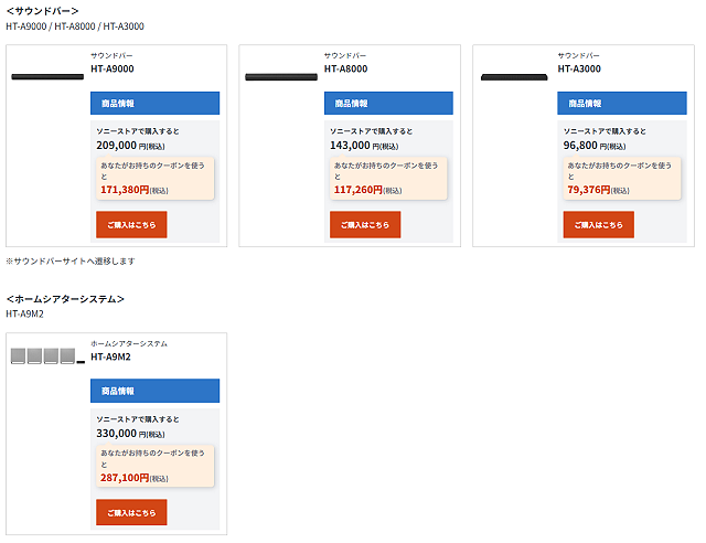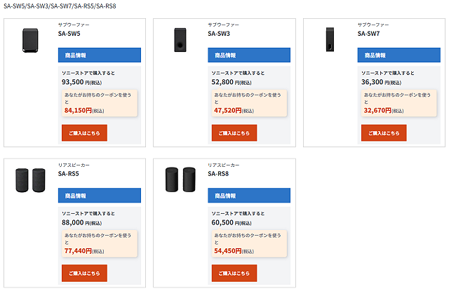 なお、「HT-A9M2」をご購入された場合、リアスピーカー「SA-RS5/SA-RS8」はキャッシュバックは対象になりません。HT-A9M2はそもそもリアスピーカーがセットになっていますので、あまりそういう買い方をする方もいらっしゃらないと思いますが、念のためご注意を。