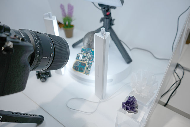 被写体もソニーストア銀座さん側でいくつか用意してくれています。アメジスト鉱石や、ミニチュアカメラ、そしてなんと言っても、ソニーストア銀座さんならではですが、ウォークマン「NW-WM1ZM2」の基板を置いてくれていました。