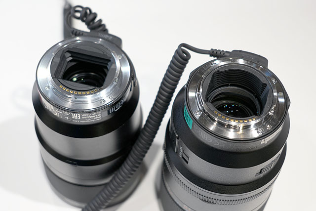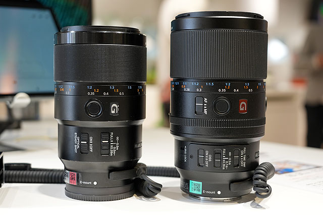 写真左が「SEL90M28G」で写真右が新型の「SEL100M28GM」です。10年ぶりのマクロレンズ発表になり、90mmマクロの後継モデルか?というと、そういうことはなく、今回はあくまで「上位機種」としての新レンズ発表になっています。