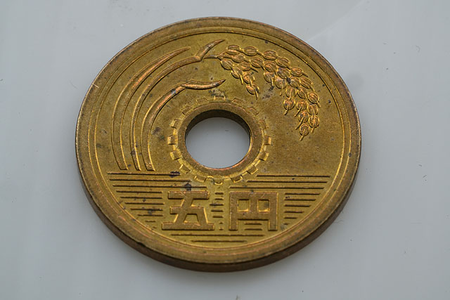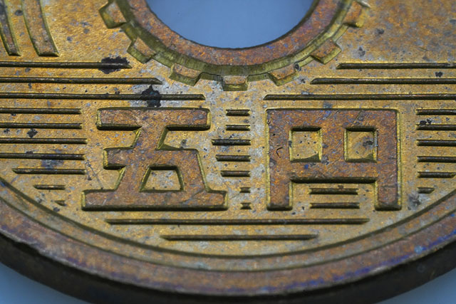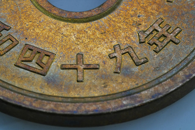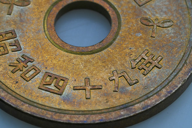 なお、この5円玉は昭和49年発行のものでした。なんと51年もの間、世の中に流通していた硬貨なんです。51年も経つと、それは傷もこれだけつきますよね。