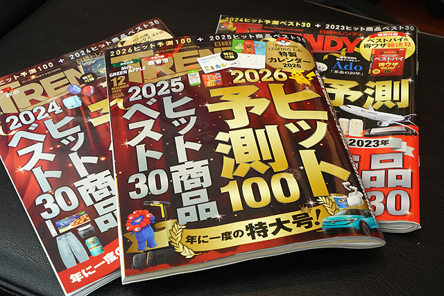 そして、今週は毎年恒例の日経トレンディさんから「ヒット商品ベスト30」が掲載された特大号が発売になっています。2025年にヒットした商品ってどんなのがあったのか、振り返り企画をしたいところだったんですが、これは史上初だと思うんですが、ソニー製品がなにも取り上げられていないという。。。「鬼滅の刃」とかゲームタイトルなどでソニー関連のものはあるんですけど、ソフトウェアの話でしかないというのは残念。