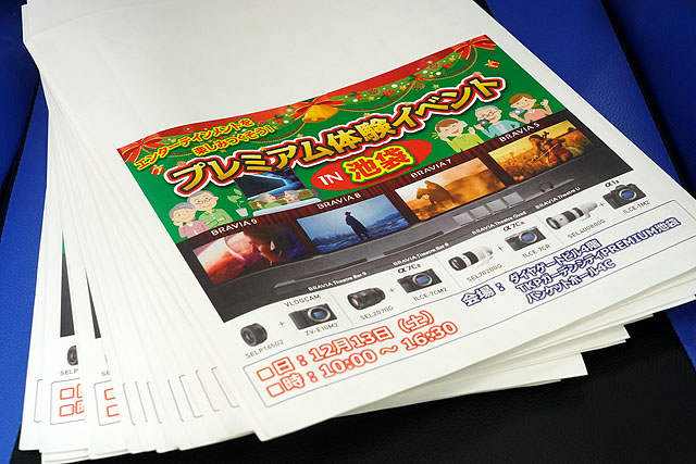 12月13日(土)に開催のソニーフェア「プレミアム体験イベント in 池袋」の先行案内も引き続き、店頭にて行っています。ご招待状をお渡ししていますので、ご来場希望の方にお渡しいたします。