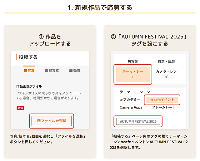 投稿方法ですが、新規作品または投稿済み作品に「AUTUMN FESTIVAL 2025」タグを加えて投稿してください。