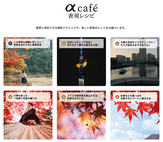 特設ページに掲載されているαcafe表現レシピでは簡単に真似できる撮影テクニックや、新しい表現のヒントをご紹介しています。
