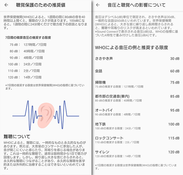 ソニーのヘッドホンの上位機種には耳の健康を守るための「セーフリスニング」機能が使えるようになっています。