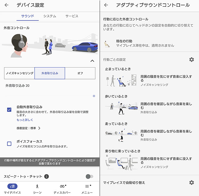 加えて「マイプレイス」の設定をすると、ユーザーがよく立ち寄る場所を学習してくれて、そこの場所での音響設定をすることもできます。