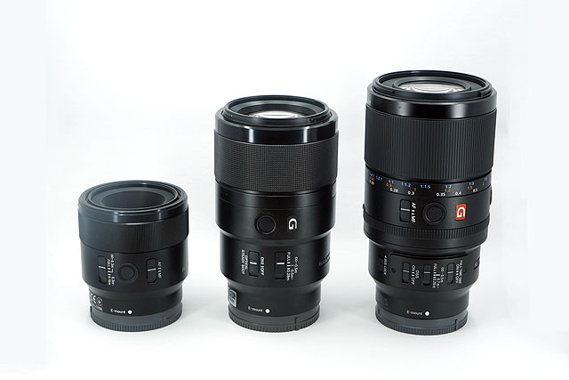 ソニーの”α”シリーズでフルサイズ対応でラインナップされているレンズはこれで3本になります。左から「SEL50M28」「SEL90M28GM」「SEL100M28GM」です。