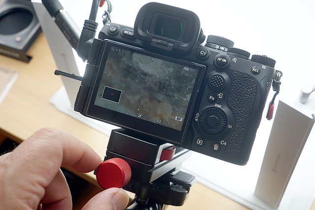 フォーカスを合わせる際は、マクロスライダーについているネジを回してスライダーを前後させてフォーカスを合わせます。