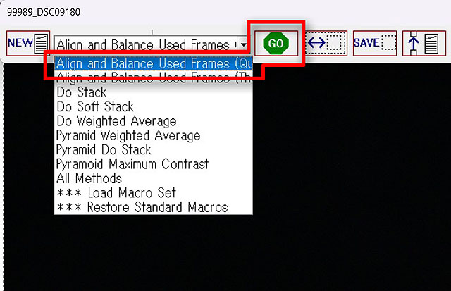 続いて「Align and Balance Used Frames(Quick)」を選択して「GO」ボタンを押します。