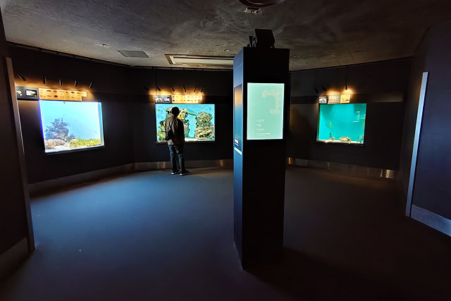 館内には「アクアシアター」と呼ばれるクロマグロの群泳を観察できる大迫力の大型水槽がありますが、世界中から集められた数多くの生き物たちに出会える水槽が多数あります。