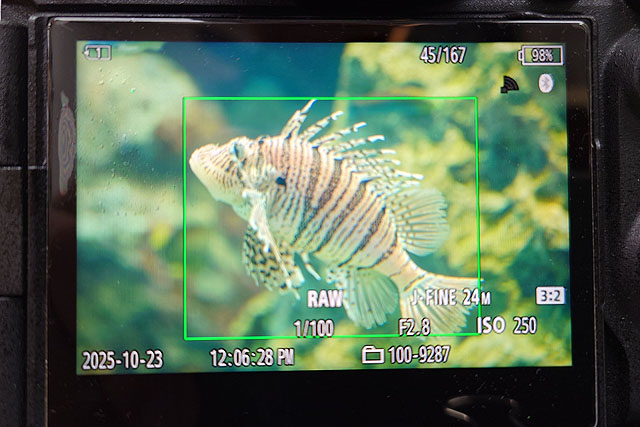 やや難しい形の「ミノカサゴ」でもご覧の通り、瞳AFこそならないものの体を見つけて追従してくれるのでかなり楽な撮影ができます。