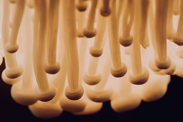 これは冷蔵庫に入っていたエノキダケだそうです。ライティングを工夫するとこんな芸術的なカットがSEL100M28GMで撮れます。