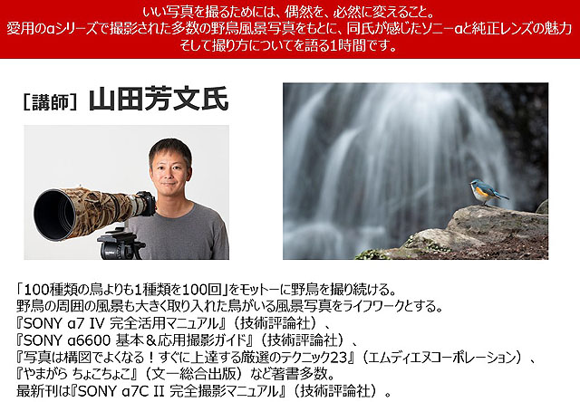 | 13時30分 | αで撮る野鳥風景セミナー by 山田芳文氏 |