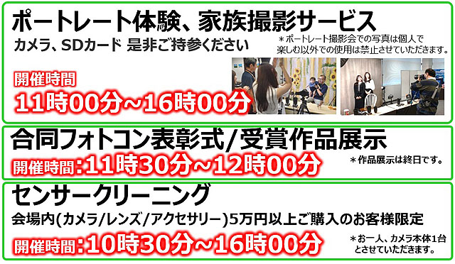 | 11時00分~16時00分 | ポートレート撮影体験会 ファミリーフォト撮影会 |