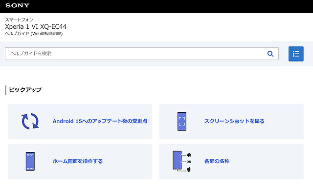 ★ソニー「Xpeira 1 VI (XQ-EC44)ヘルプガイド」はこちらから