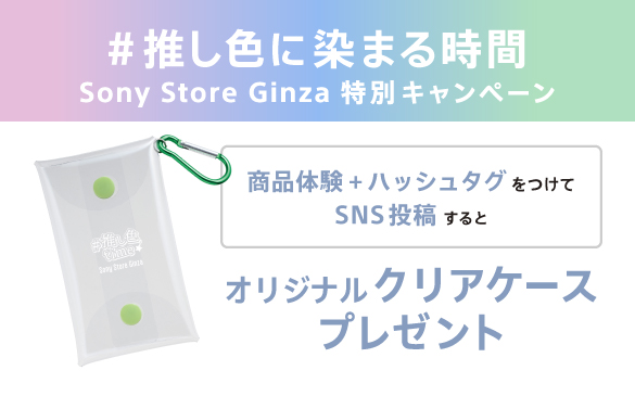 Xにて #推し色time #ソニーストア銀座 をつけて体験の様子を投稿すると、先着でオリジナルクリアケースがプレゼントされます。